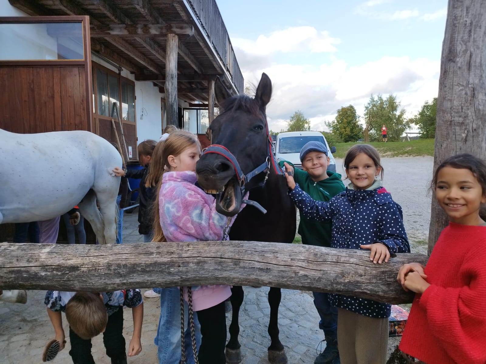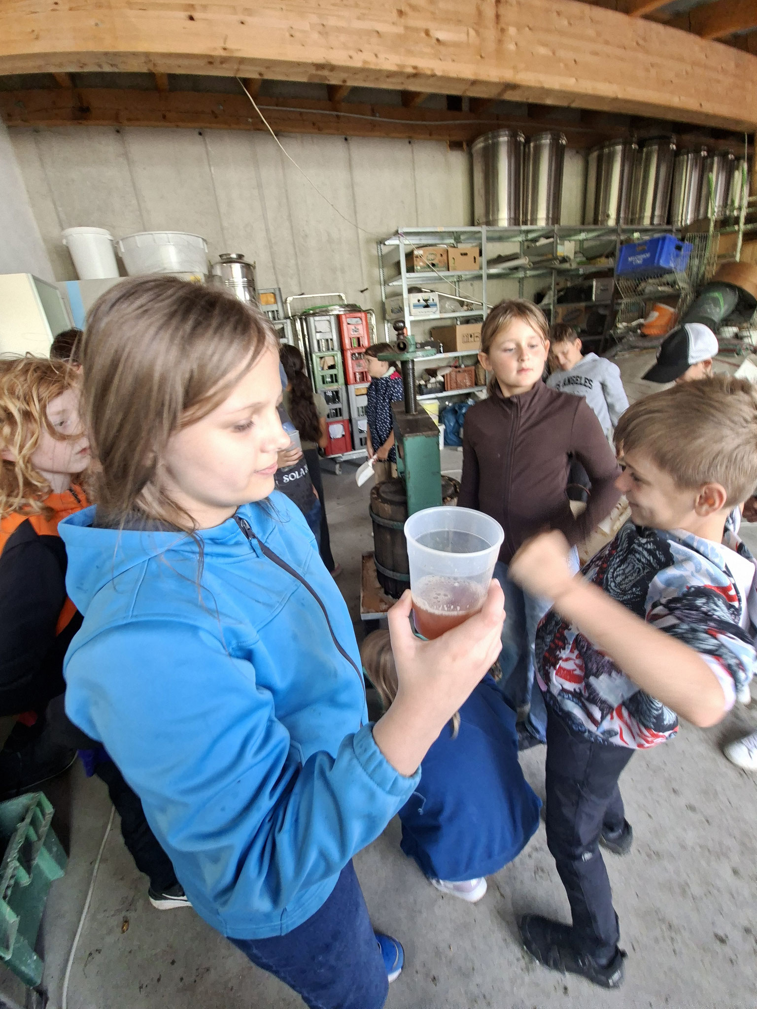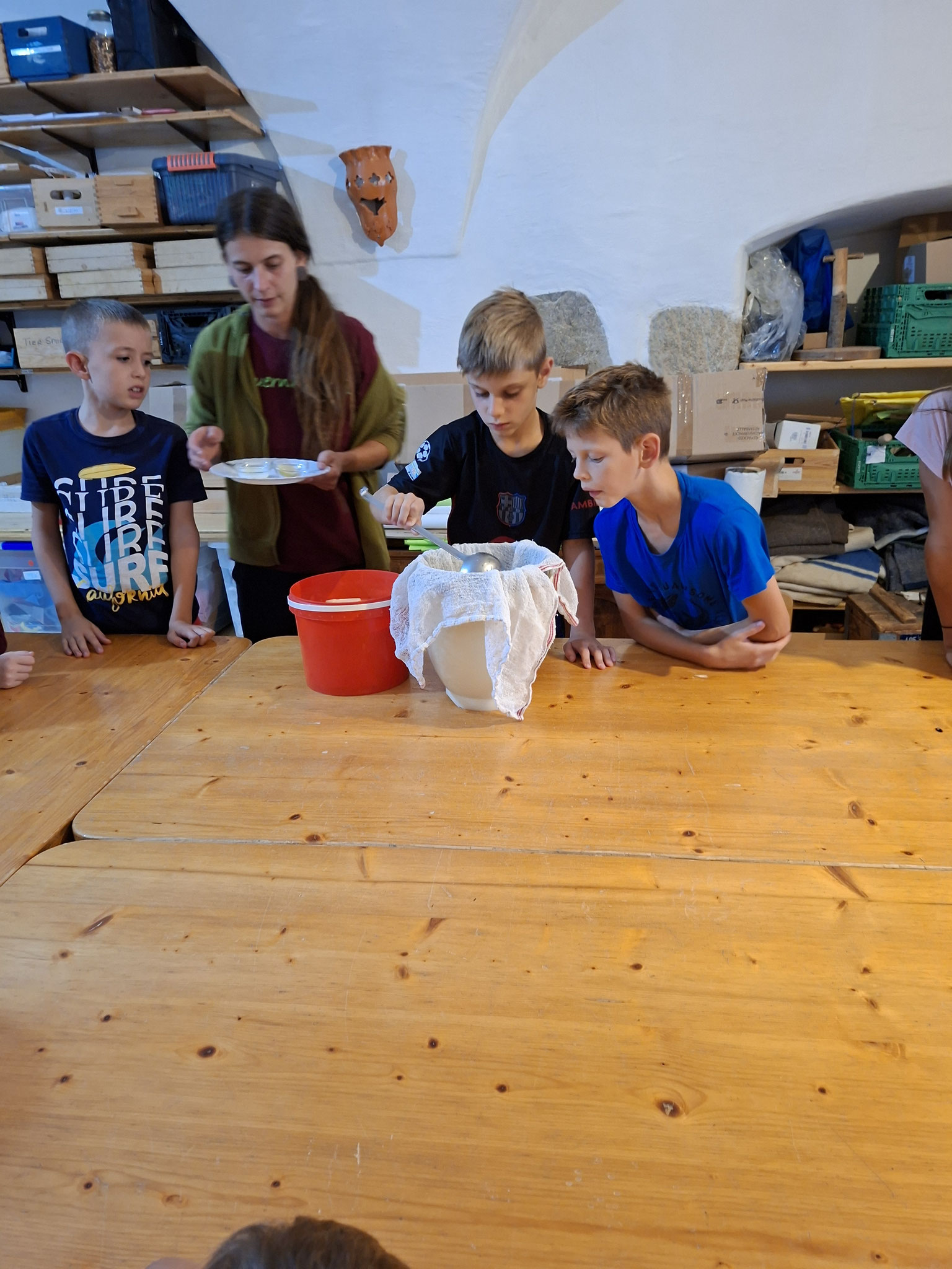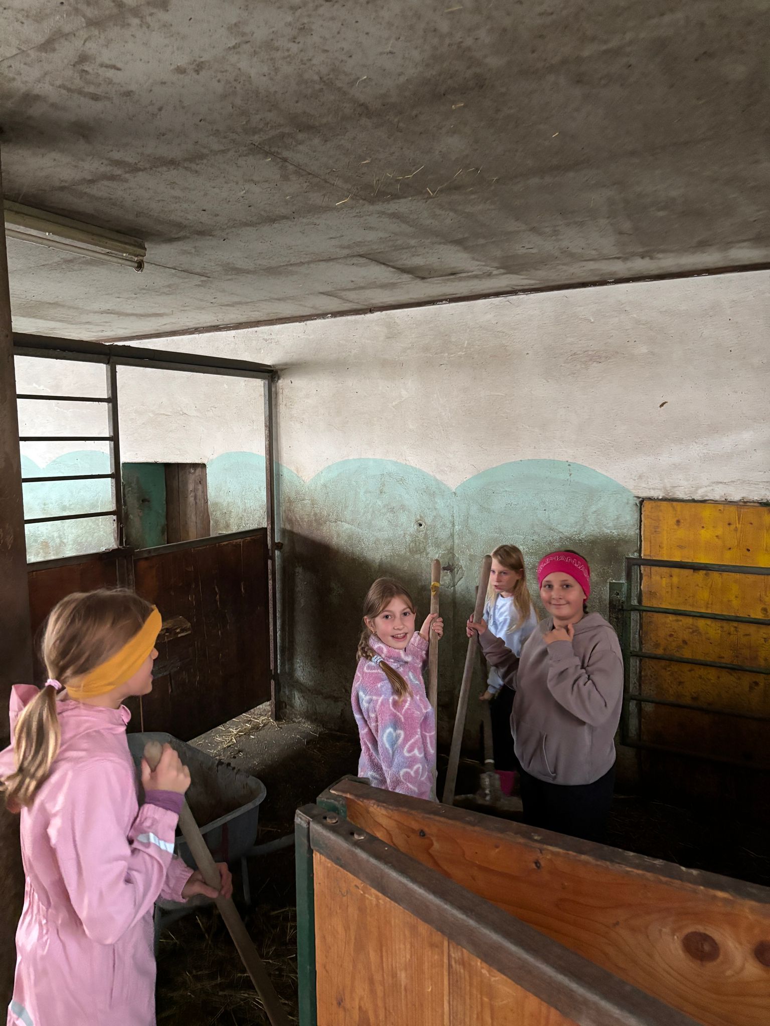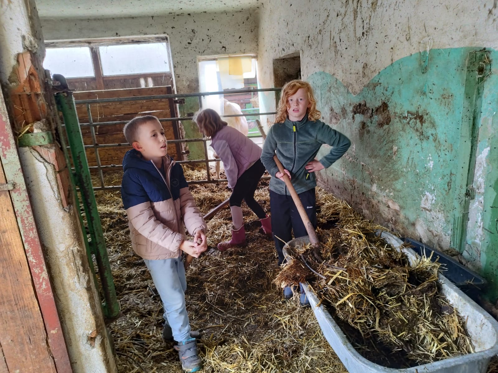 Die zweite Schulwoche verbrachten die 4A und 4B auf einem Bio-Bauernhof in Bad Zell. Dort lernten die Kinder das Leben und Arbeiten am Bauernhof hautnah kennen – vom Stallausmisten und Füttern der Tiere bis zum Brotbacken, Buttermachen und Apfelsaftpressen.