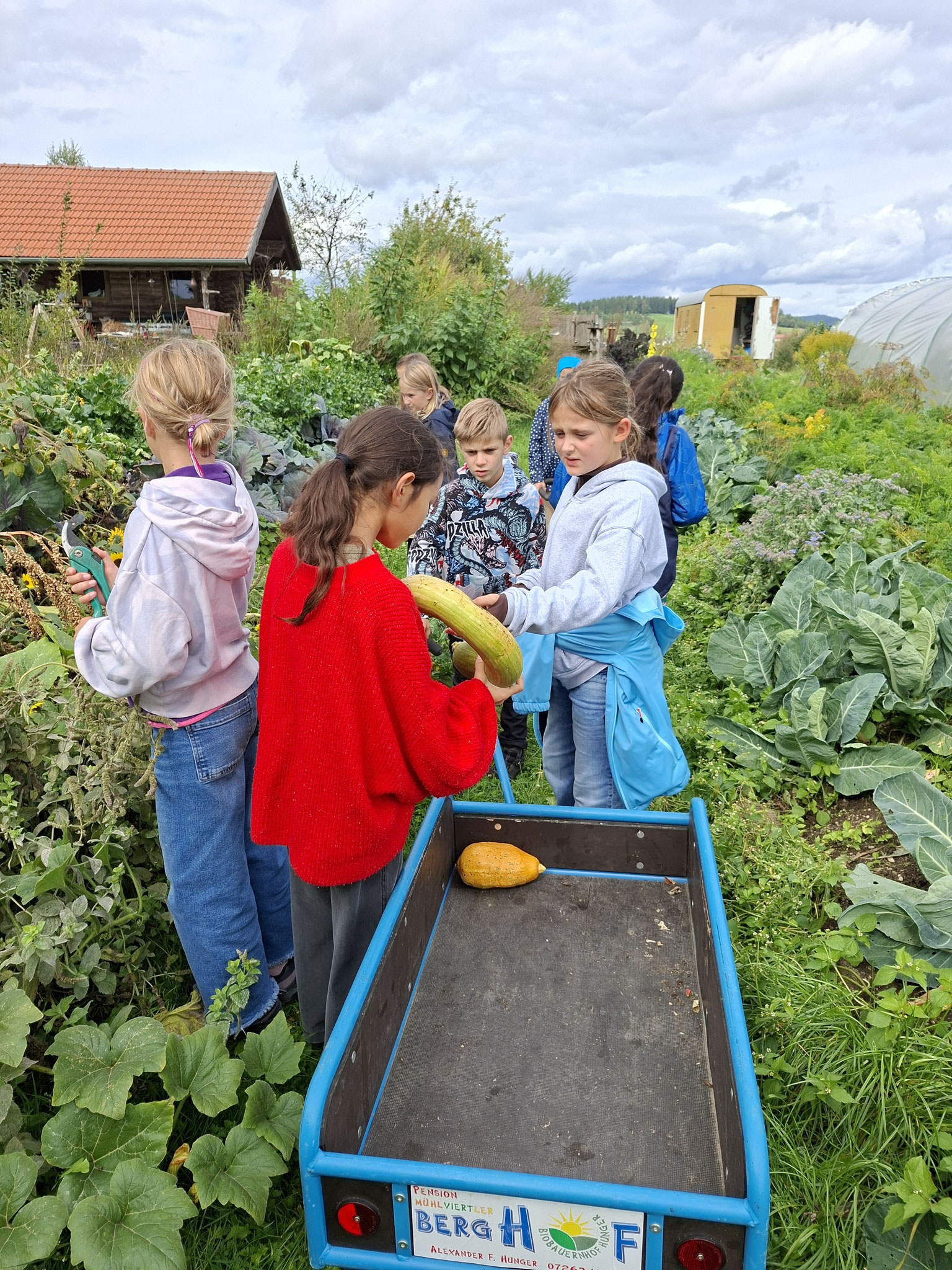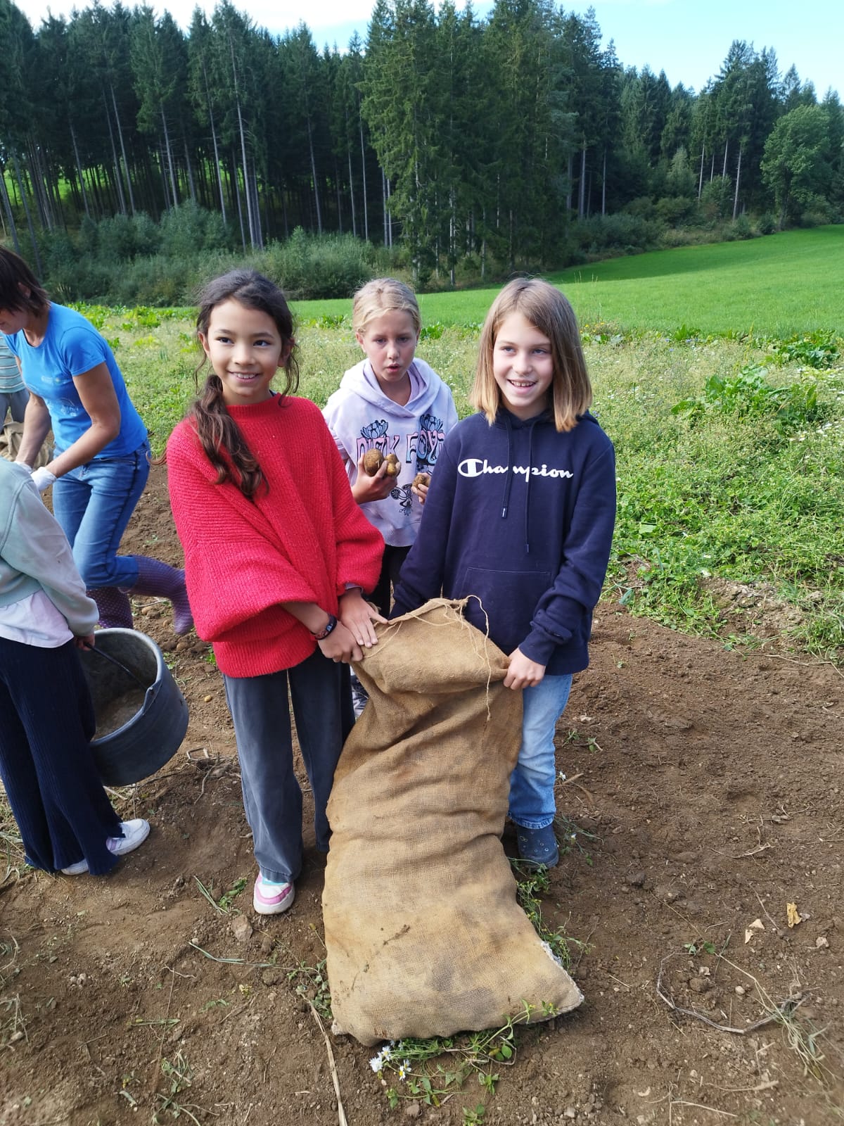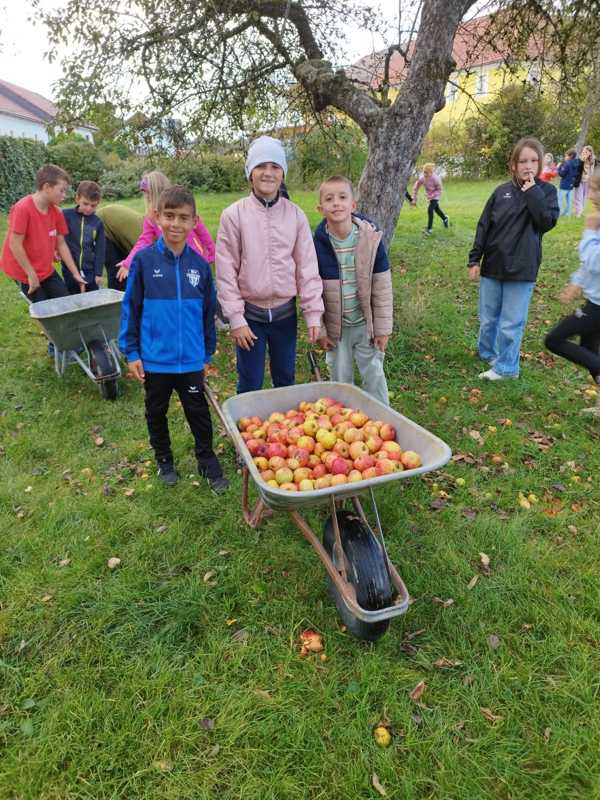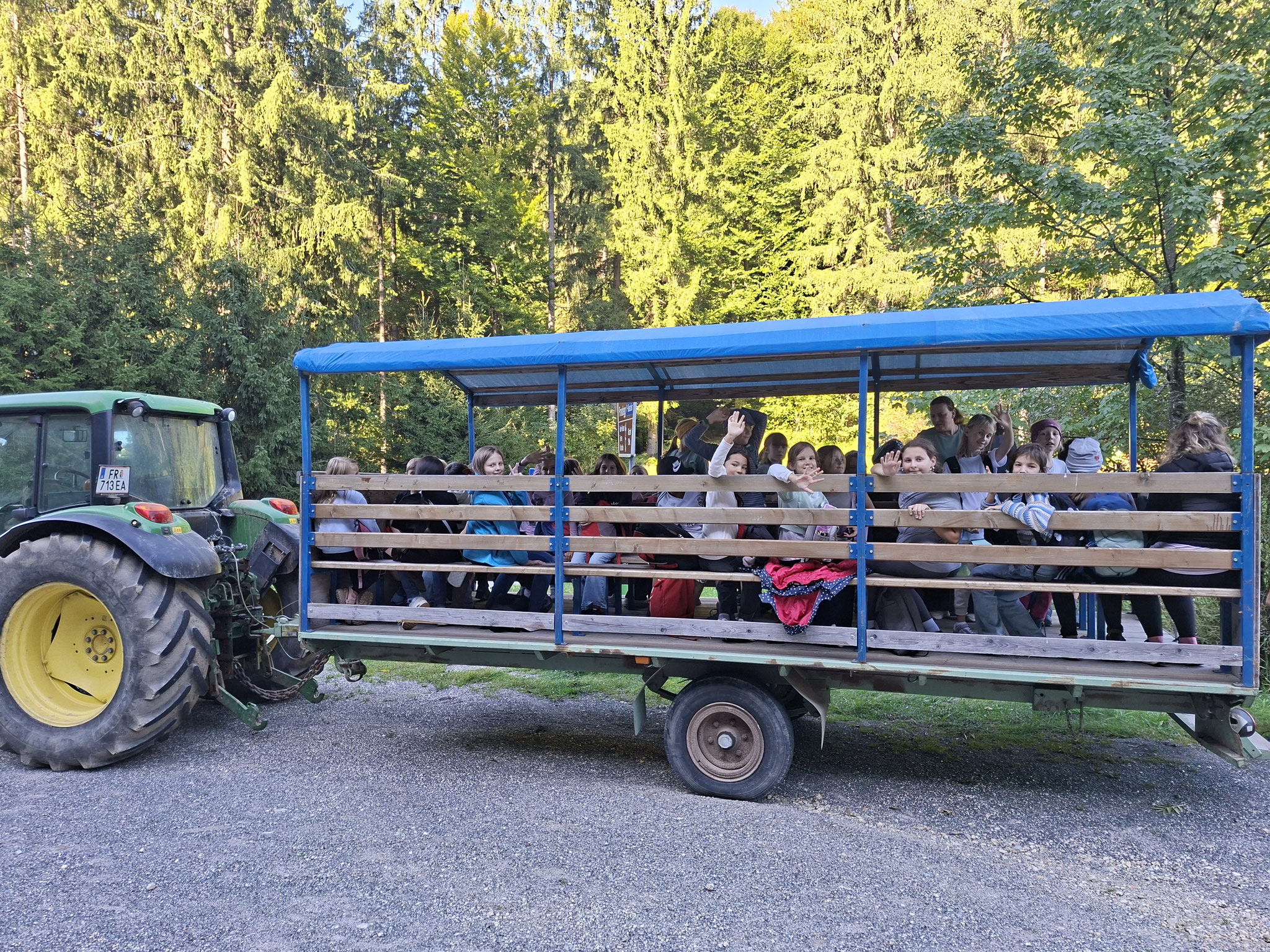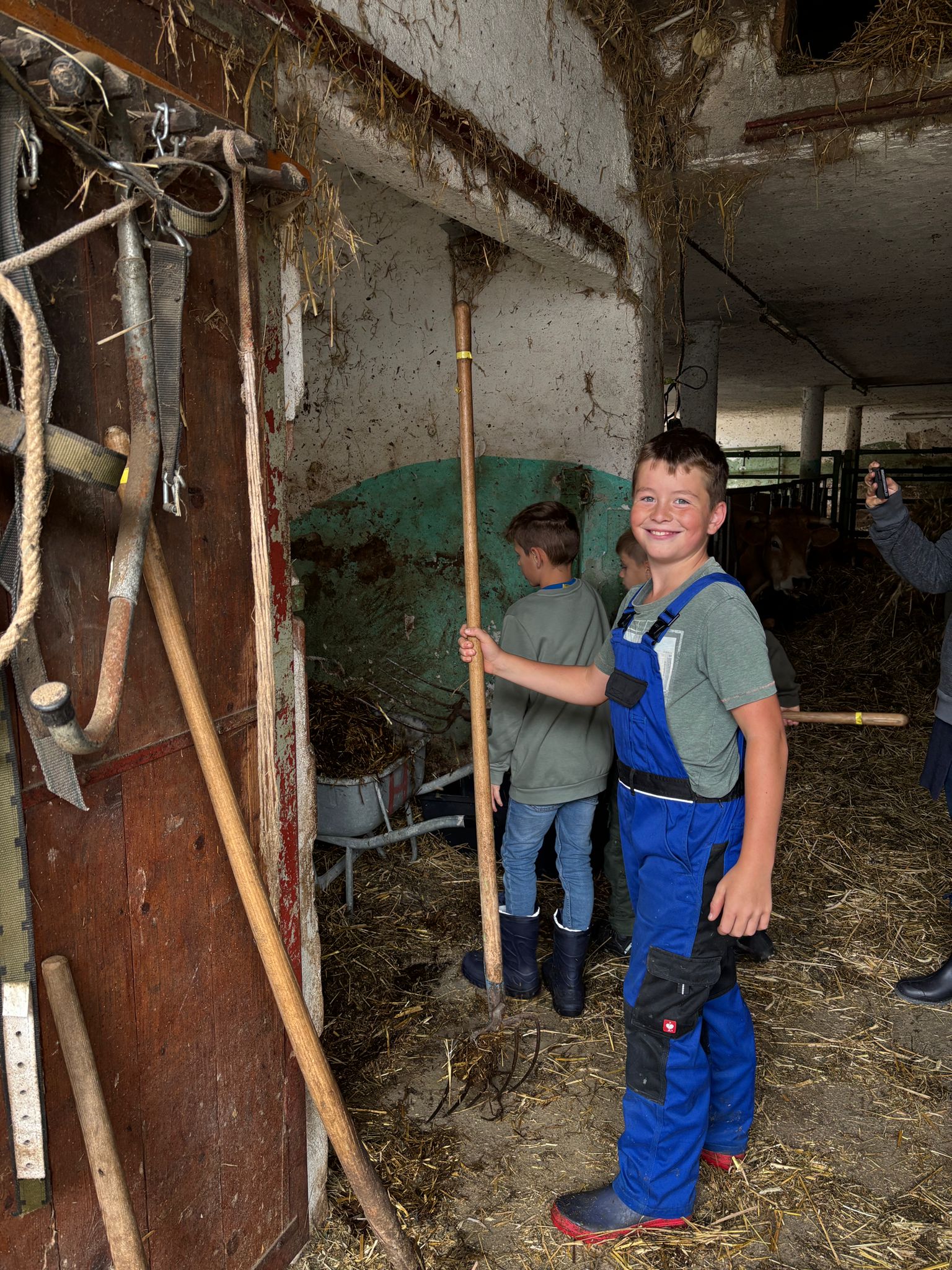 Die zweite Schulwoche verbrachten die 4A und 4B auf einem Bio-Bauernhof in Bad Zell. Dort lernten die Kinder das Leben und Arbeiten am Bauernhof hautnah kennen – vom Stallausmisten und Füttern der Tiere bis zum Brotbacken, Buttermachen und Apfelsaftpressen.