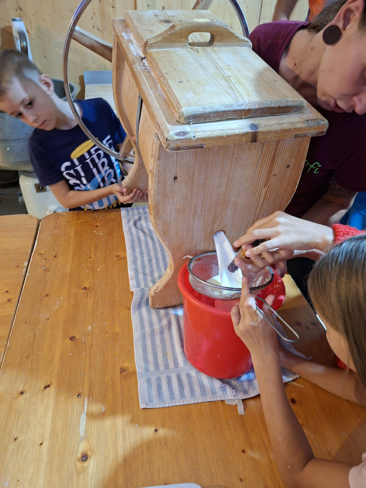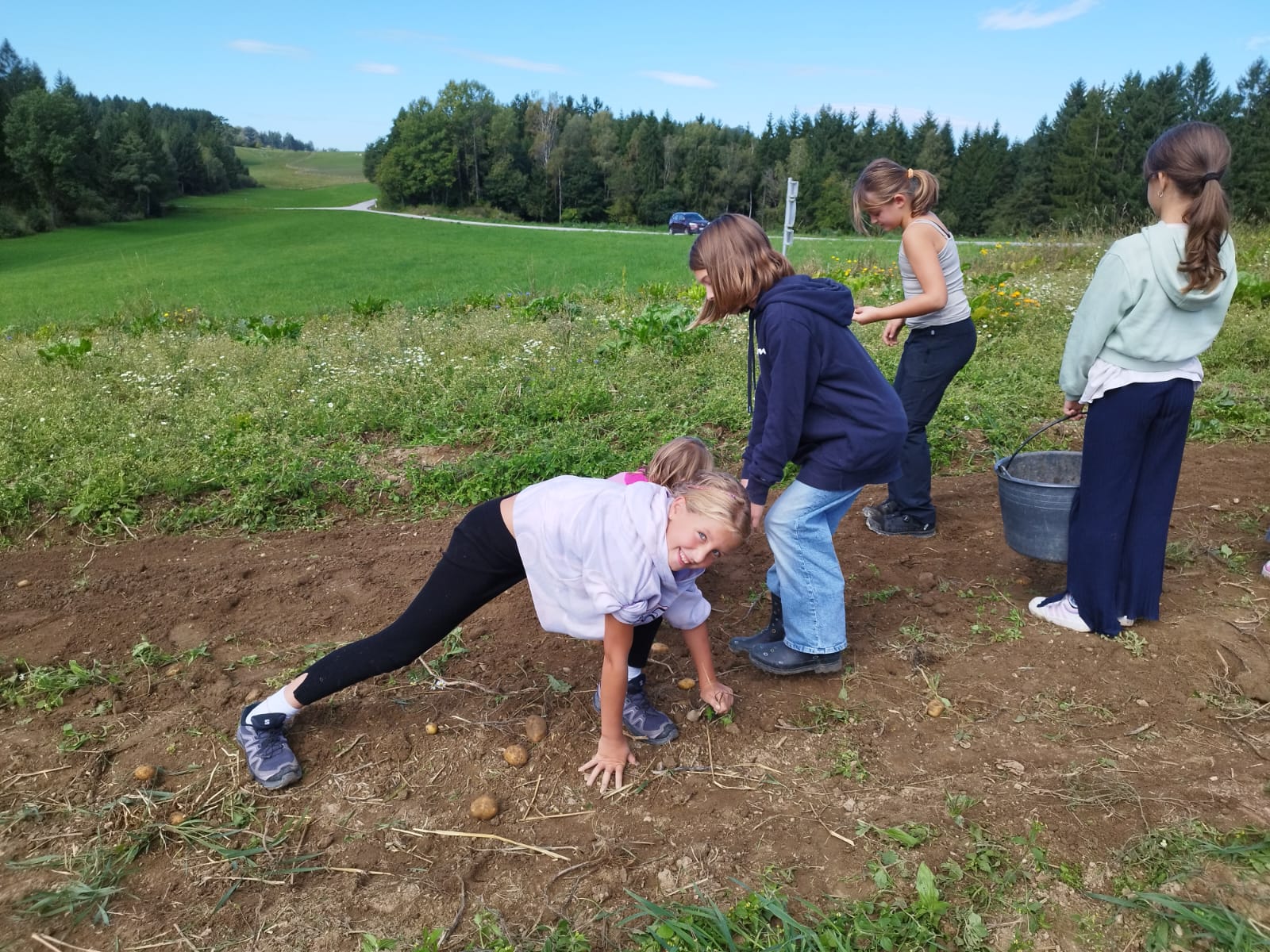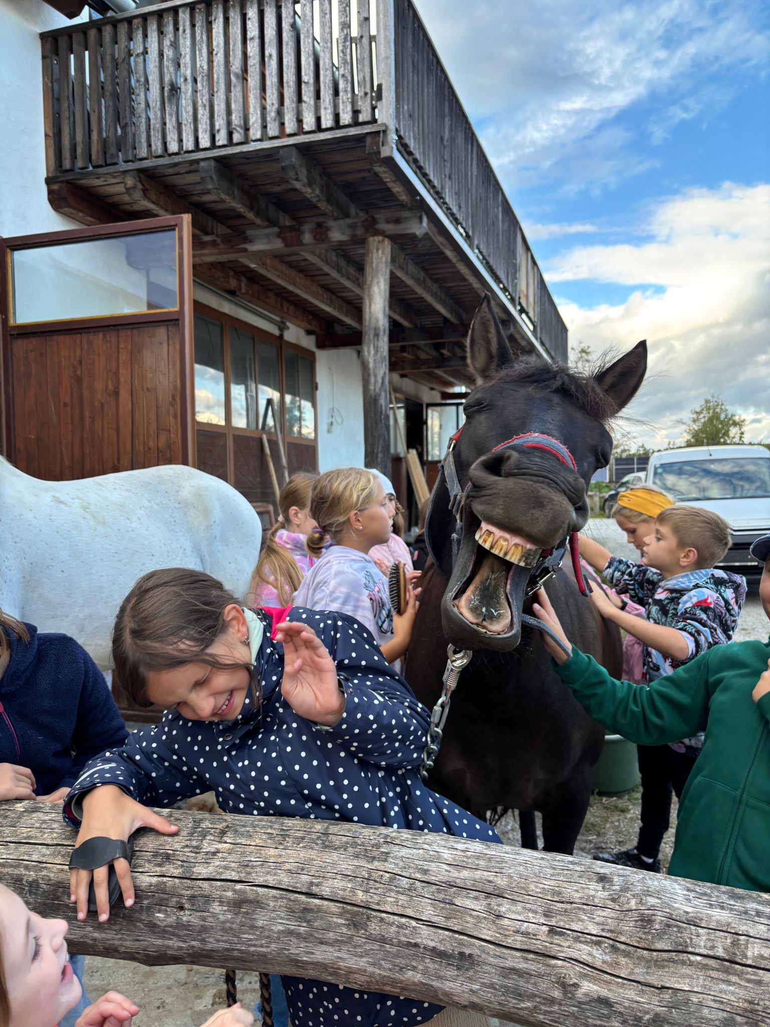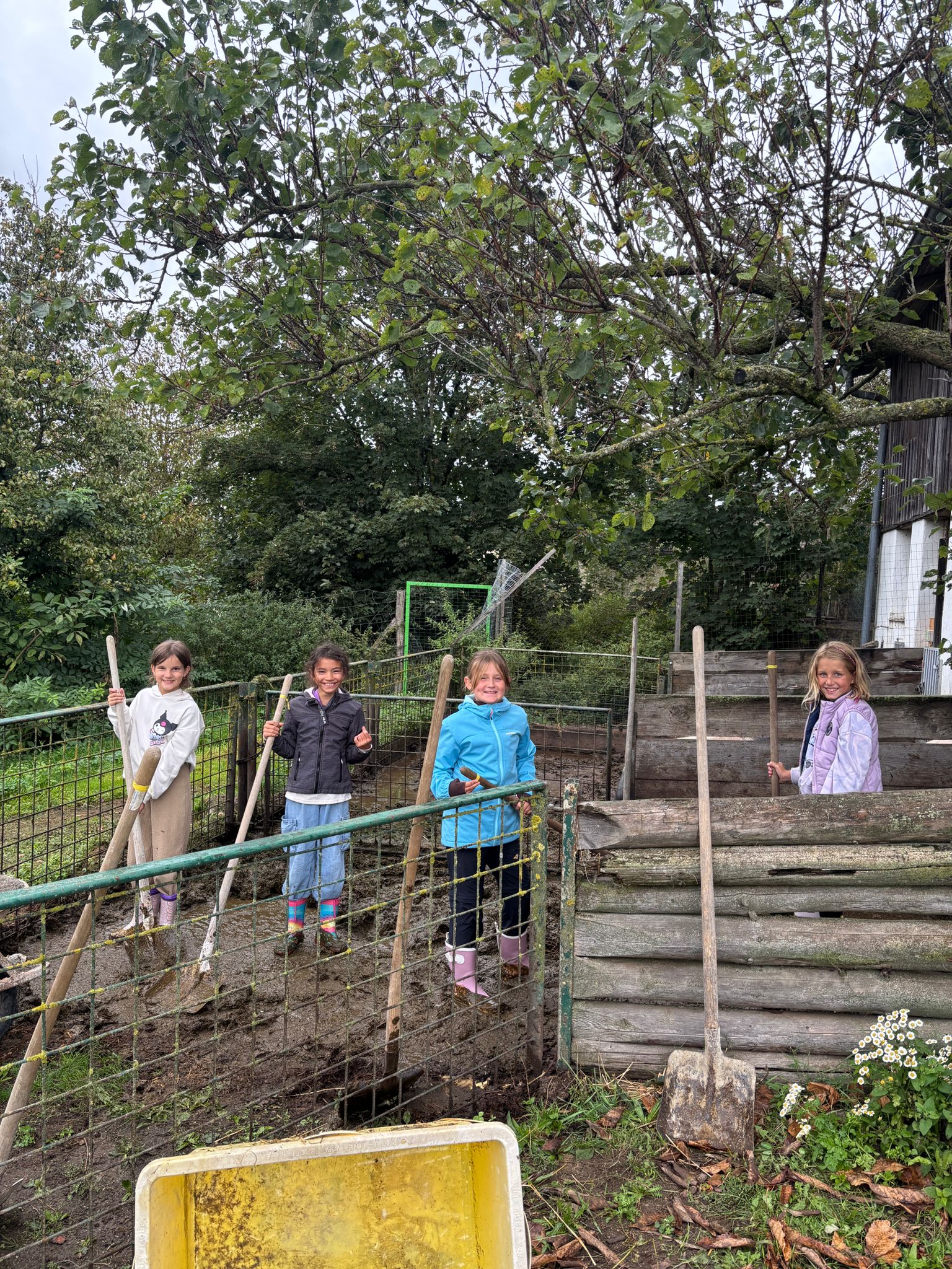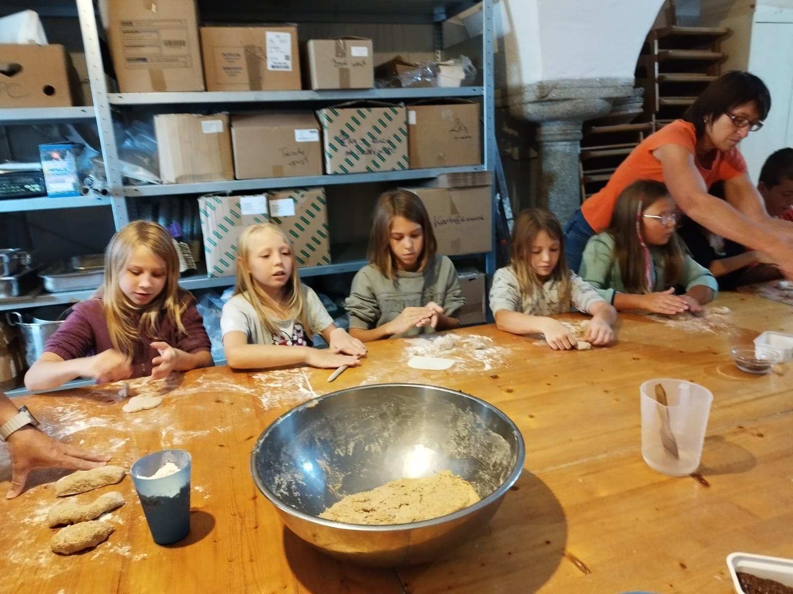 Die zweite Schulwoche verbrachten die 4A und 4B auf einem Bio-Bauernhof in Bad Zell. Dort lernten die Kinder das Leben und Arbeiten am Bauernhof hautnah kennen – vom Stallausmisten und Füttern der Tiere bis zum Brotbacken, Buttermachen und Apfelsaftpressen.
