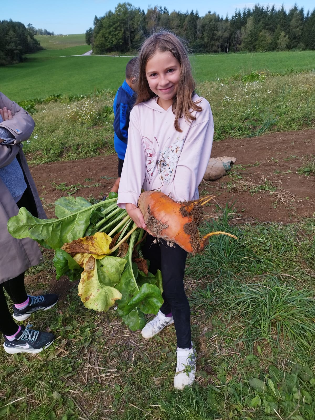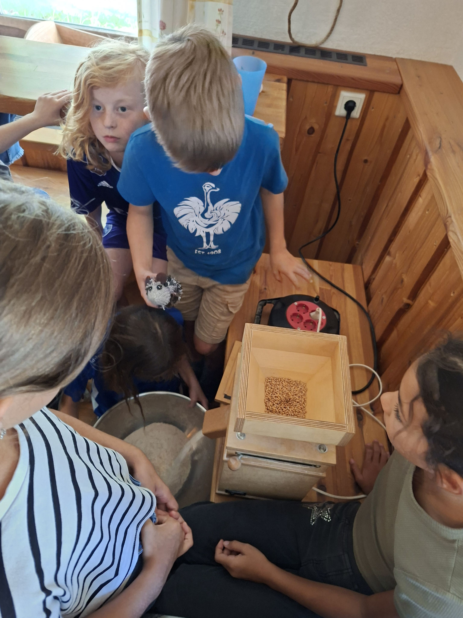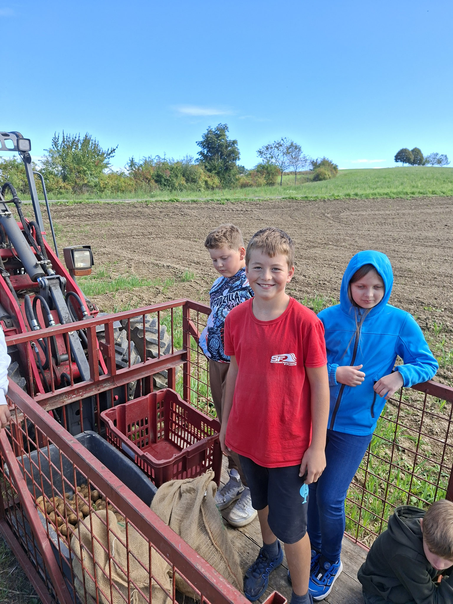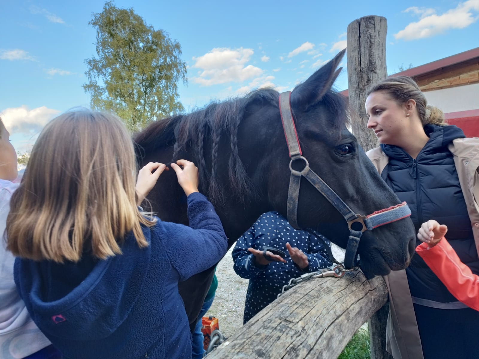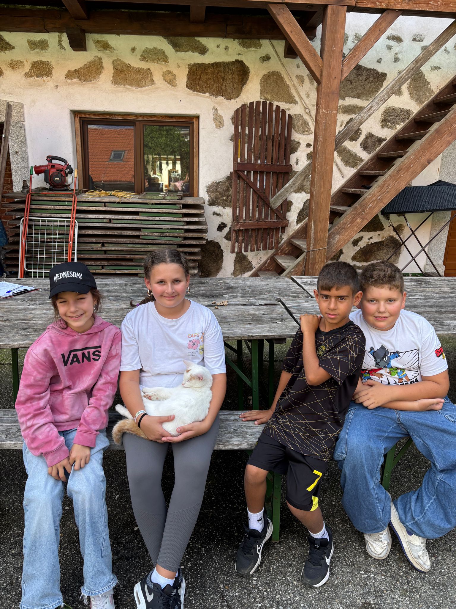 Die zweite Schulwoche verbrachten die 4A und 4B auf einem Bio-Bauernhof in Bad Zell. Dort lernten die Kinder das Leben und Arbeiten am Bauernhof hautnah kennen – vom Stallausmisten und Füttern der Tiere bis zum Brotbacken, Buttermachen und Apfelsaftpressen.
