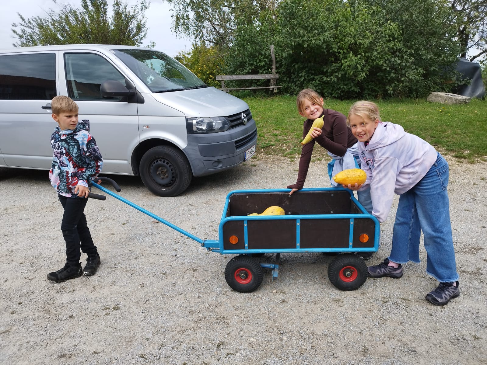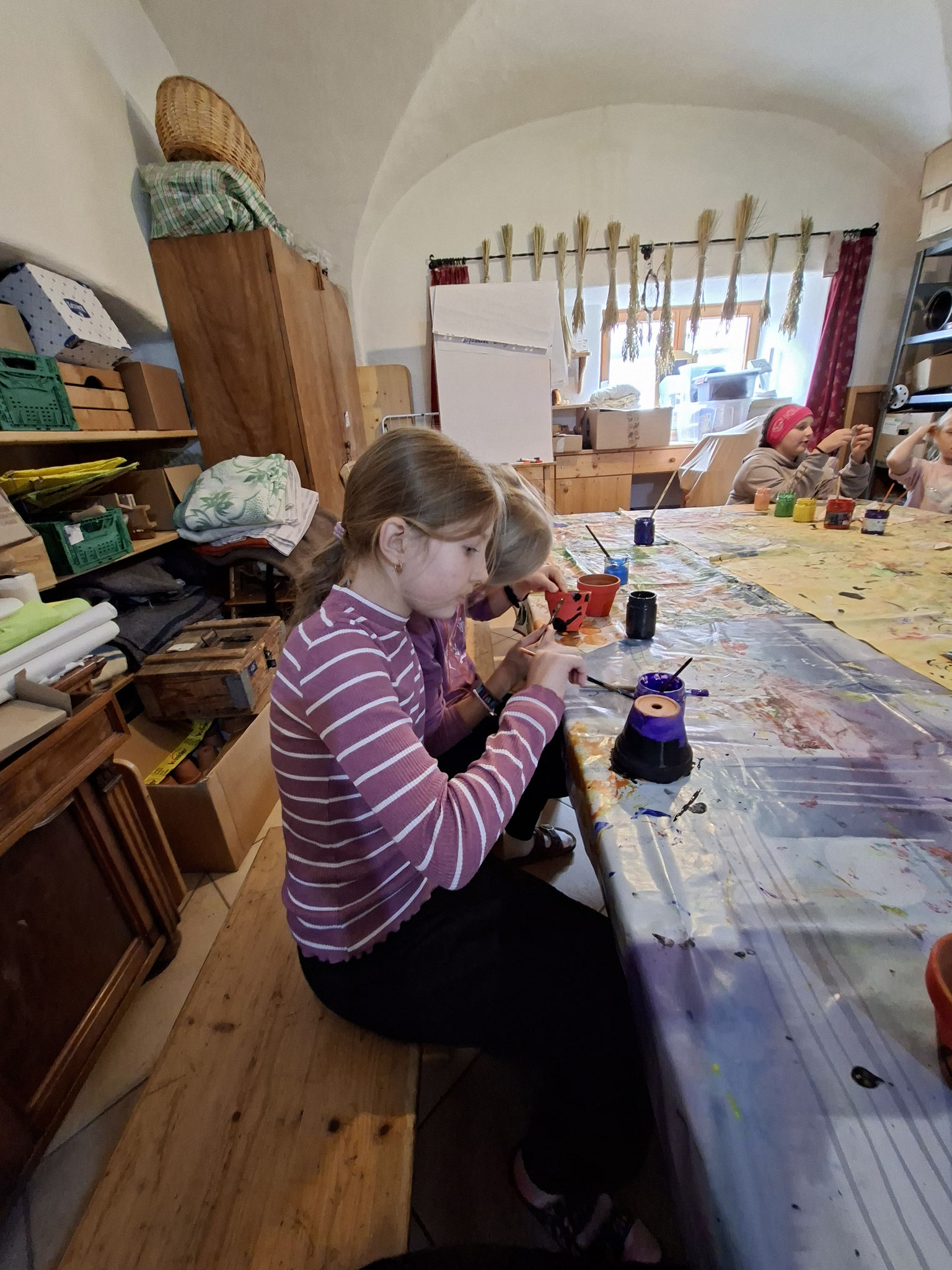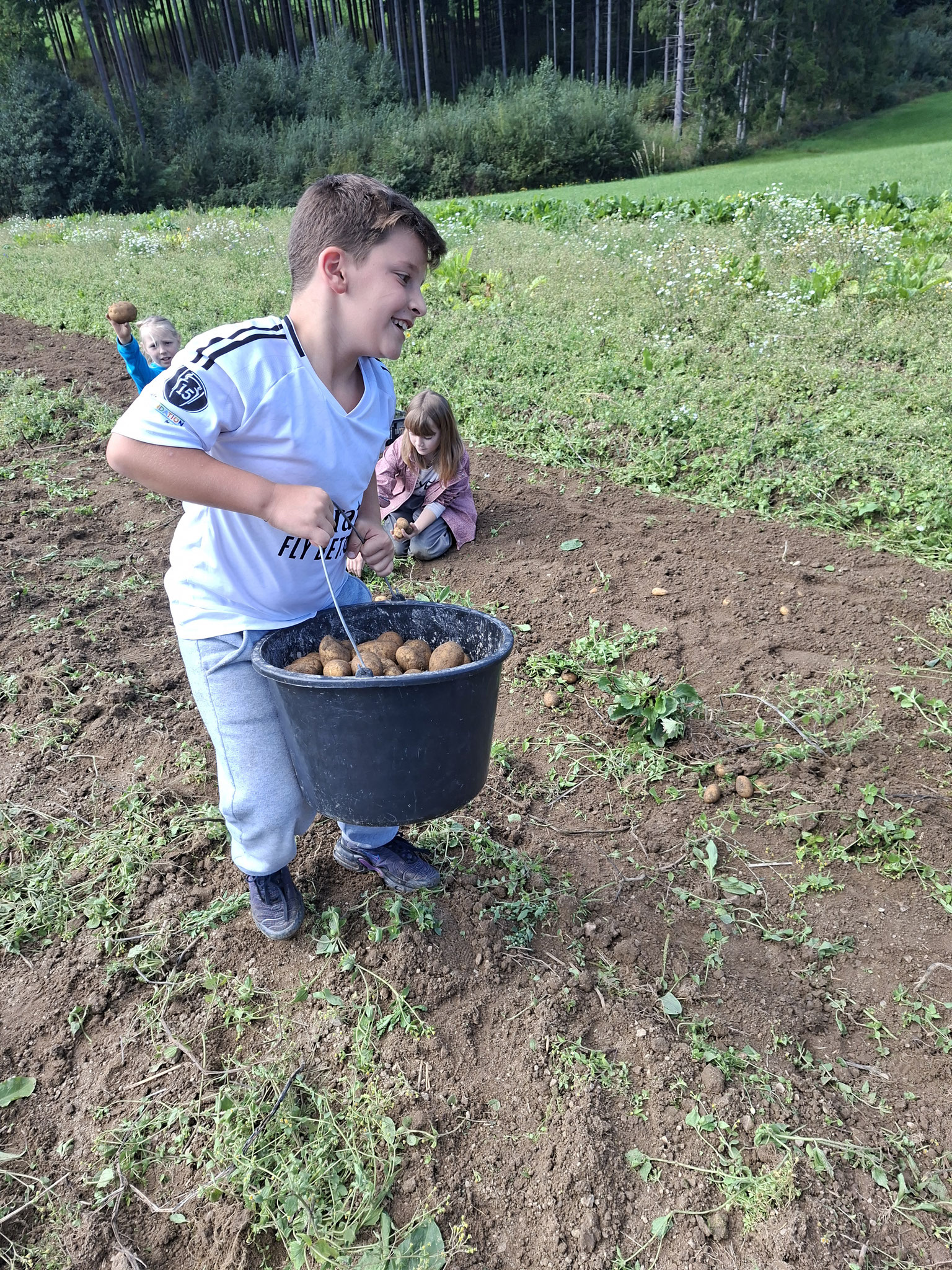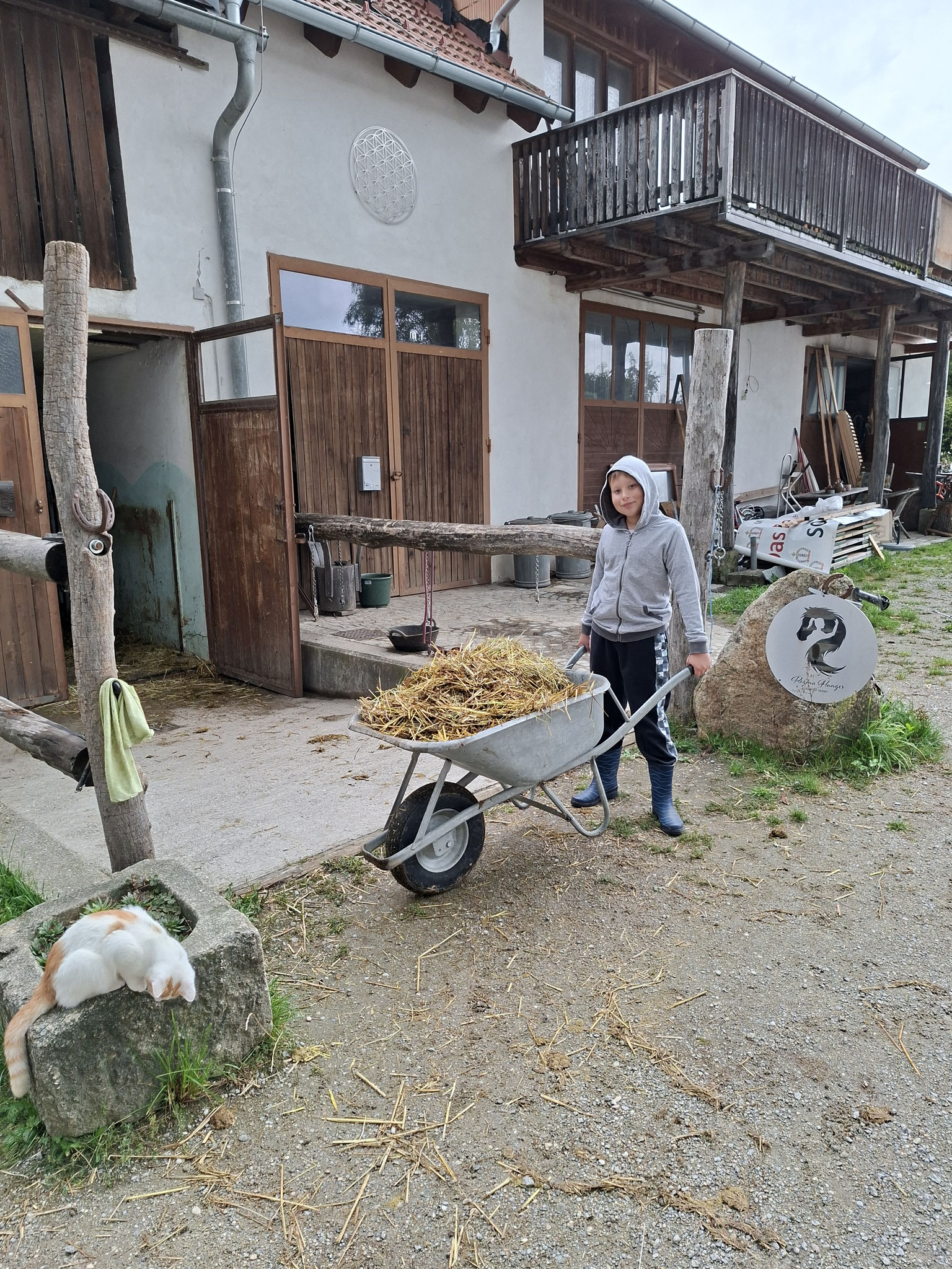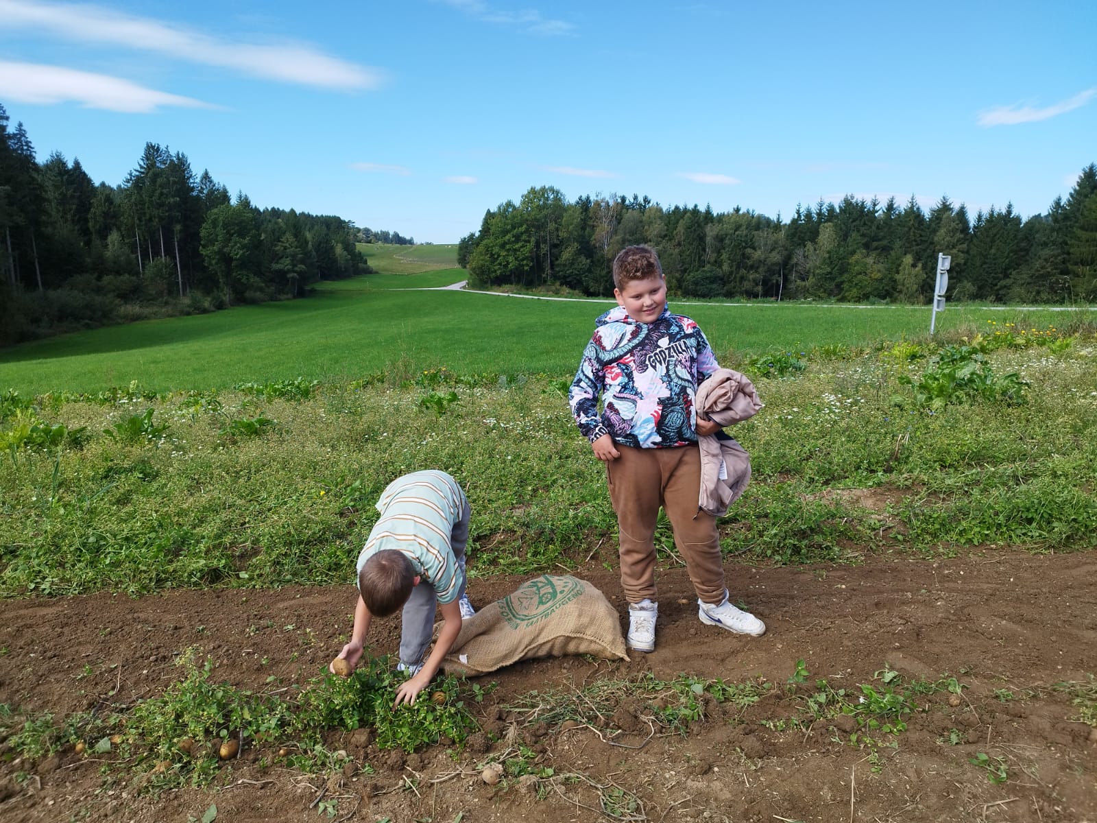Die zweite Schulwoche verbrachten die 4A und 4B auf einem Bio-Bauernhof in Bad Zell. Dort lernten die Kinder das Leben und Arbeiten am Bauernhof hautnah kennen – vom Stallausmisten und Füttern der Tiere bis zum Brotbacken, Buttermachen und Apfelsaftpressen.