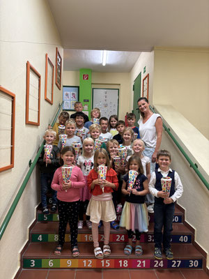 Unsere Erstklässler sind inzwischen richtig in der Schulwelt angekommen und fühlen sich sichtlich wohl. Mit viel Neugier und Freude entdecken sie täglich Neues und starten mit großer Begeisterung in ihren Schulalltag.