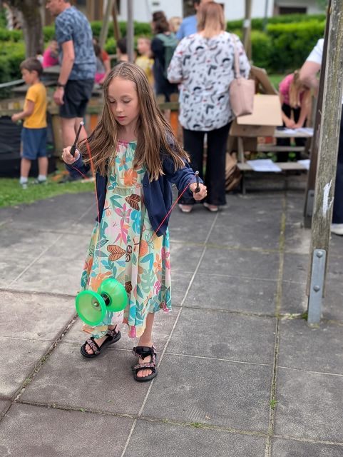 Mit viel Spaß, Konzentration und Geschick wurden Bälle, Tücher und Keulen durch die Luft gewirbelt. Auch mit dem Diabolo und Balanciertellern wurde experimentiert. Eine tolle Gelegenheit, Koordination und Ausdauer auf spielerische Weise zu fördern.