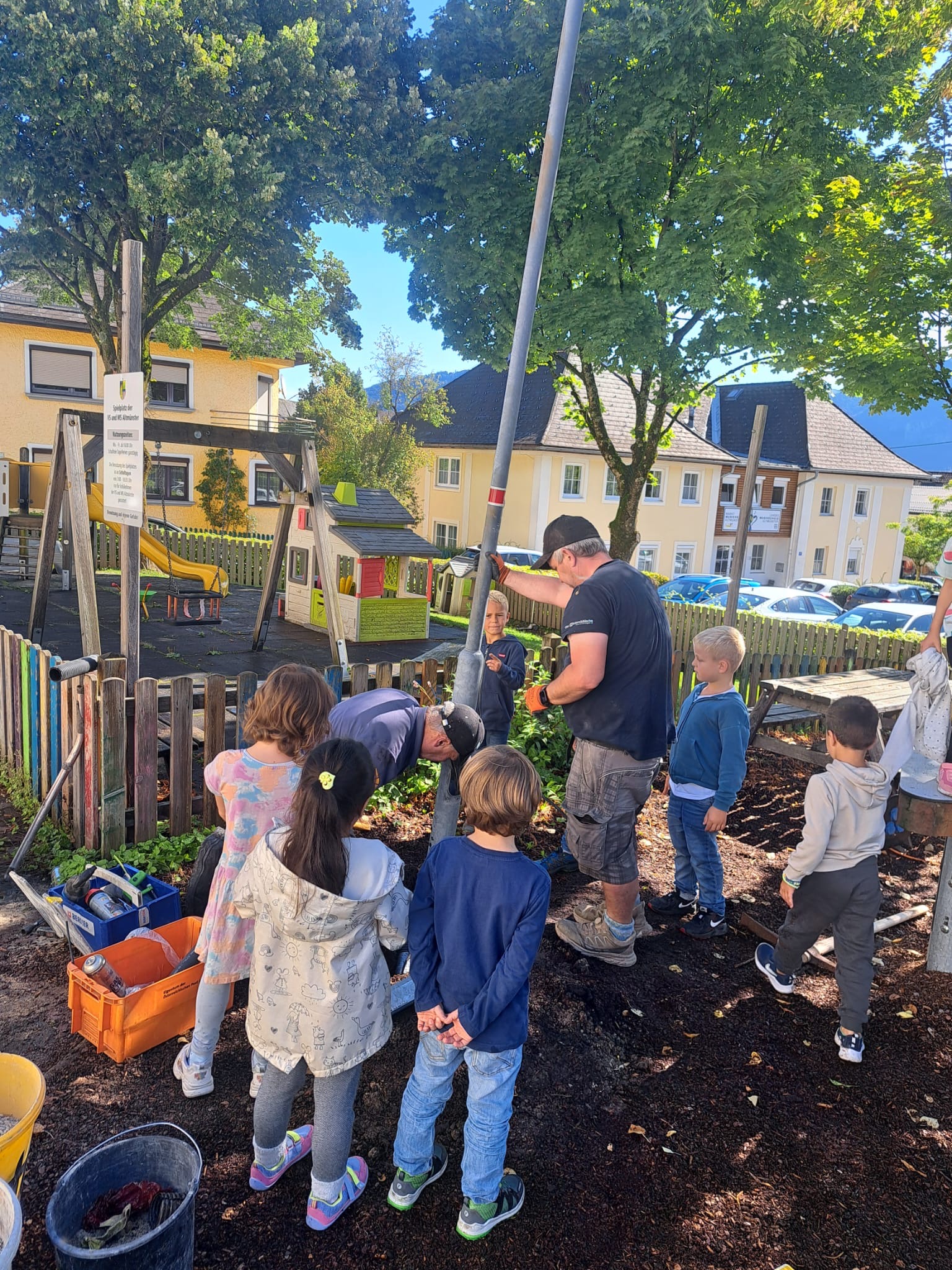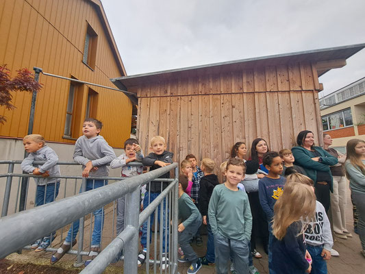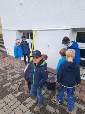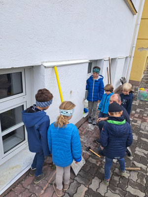 Wenn unser Schulwart Siegi etwas richtet, sind wir immer gespannt dabei und beobachten jeden Handgriff genauestens.