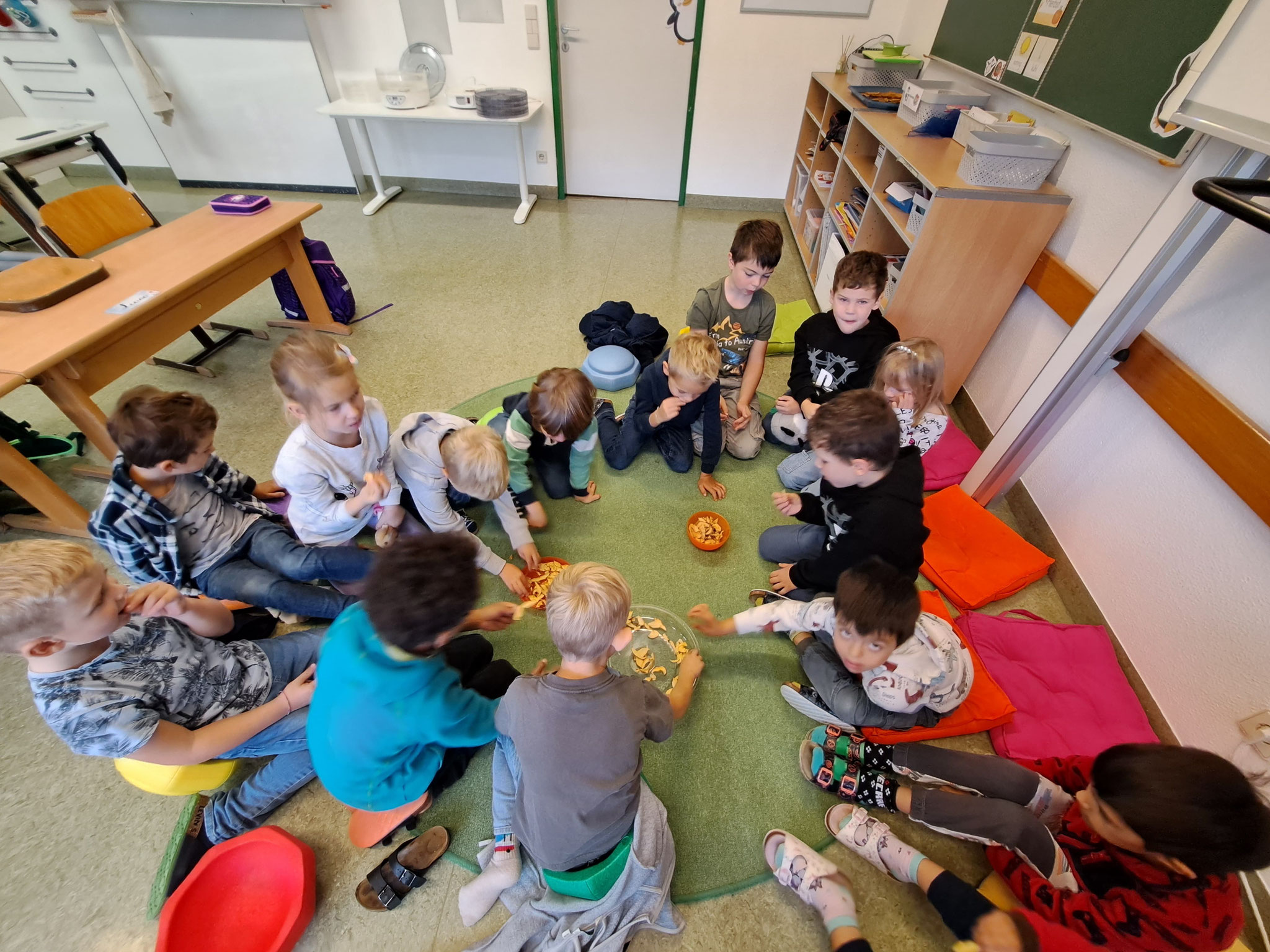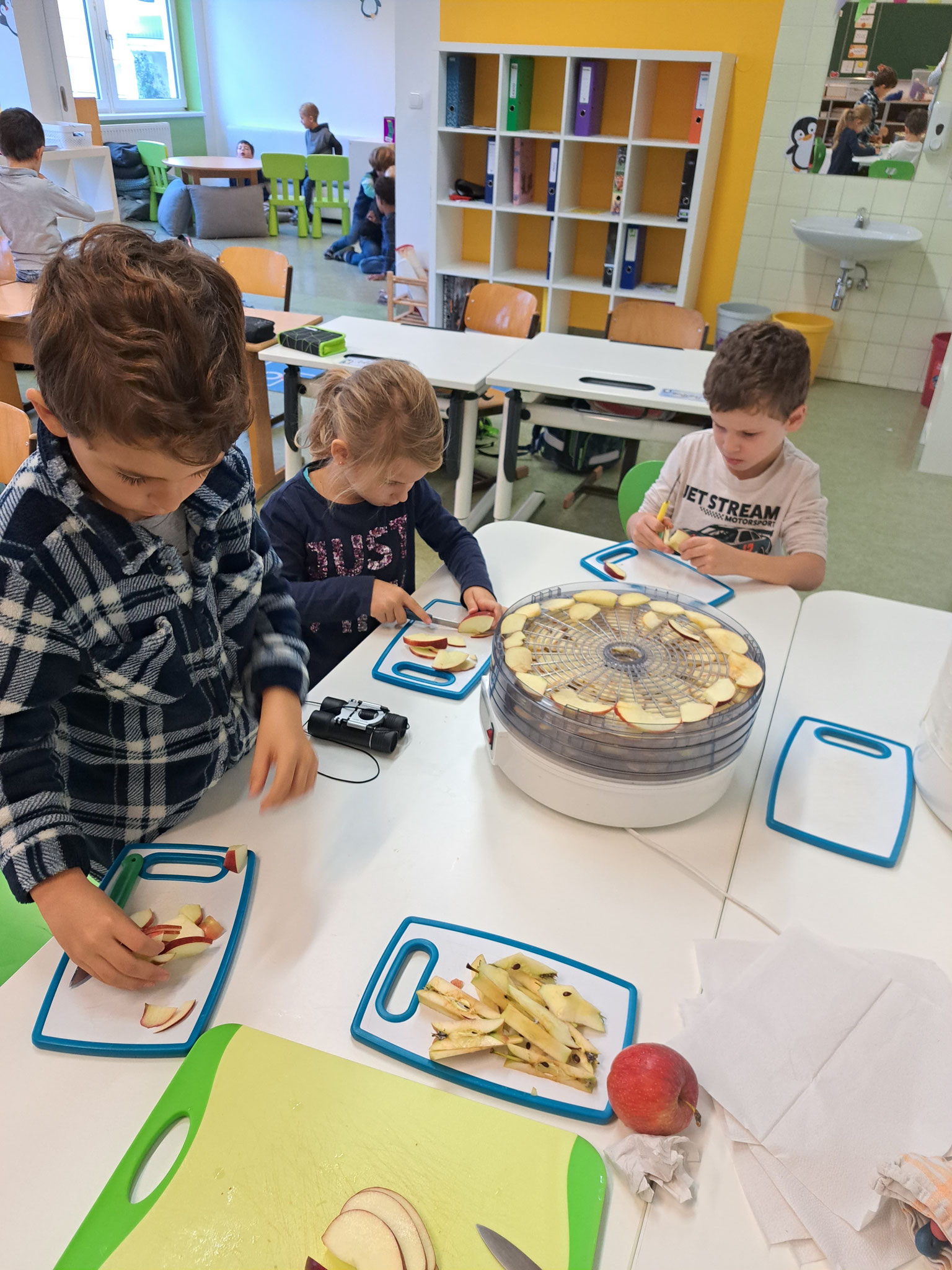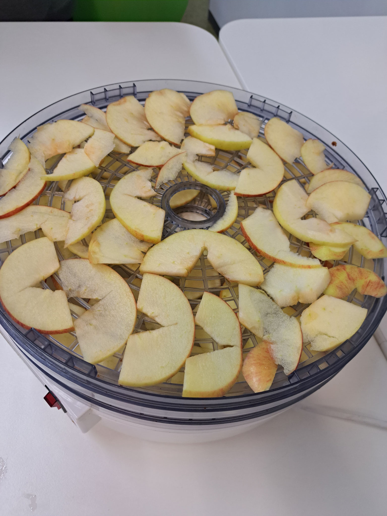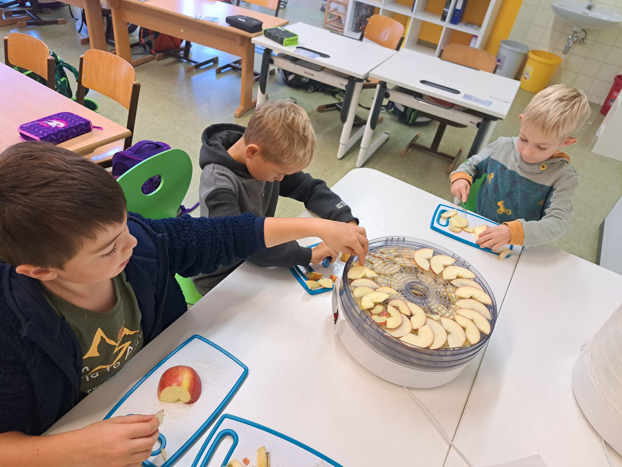 Wir machten Apfelchips! Alle helfen fleißig mit und waschen, schneiden und trocknen die Äpfel. Der Duft war himmlisch und das Verkosten war kaum abzuwarten. Das gemeinsame Essen unserer Chips am nächsten Tag war ganz besonders toll!