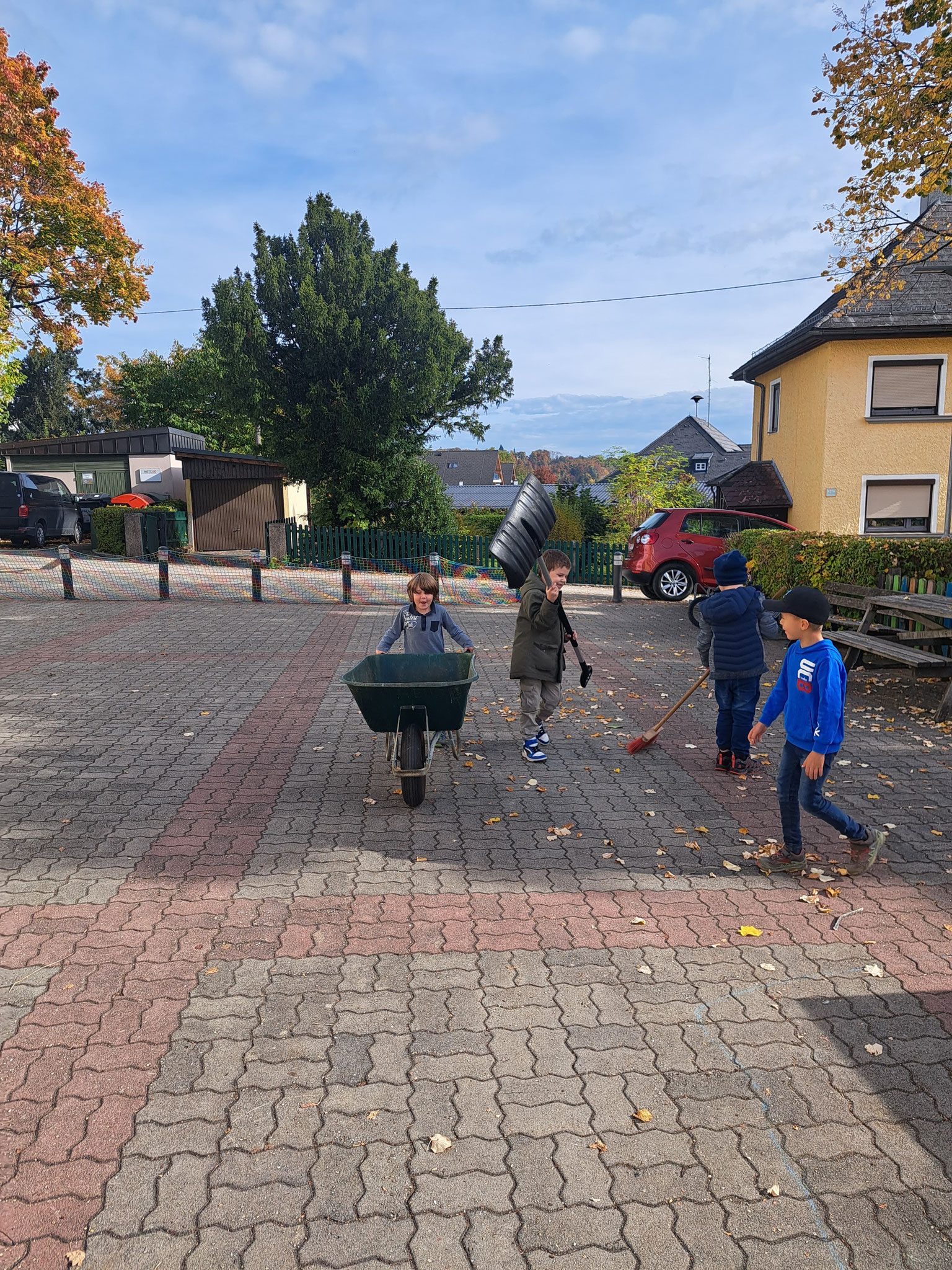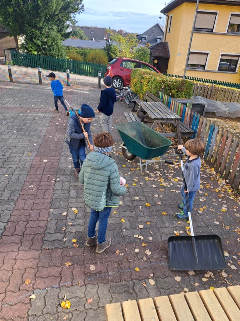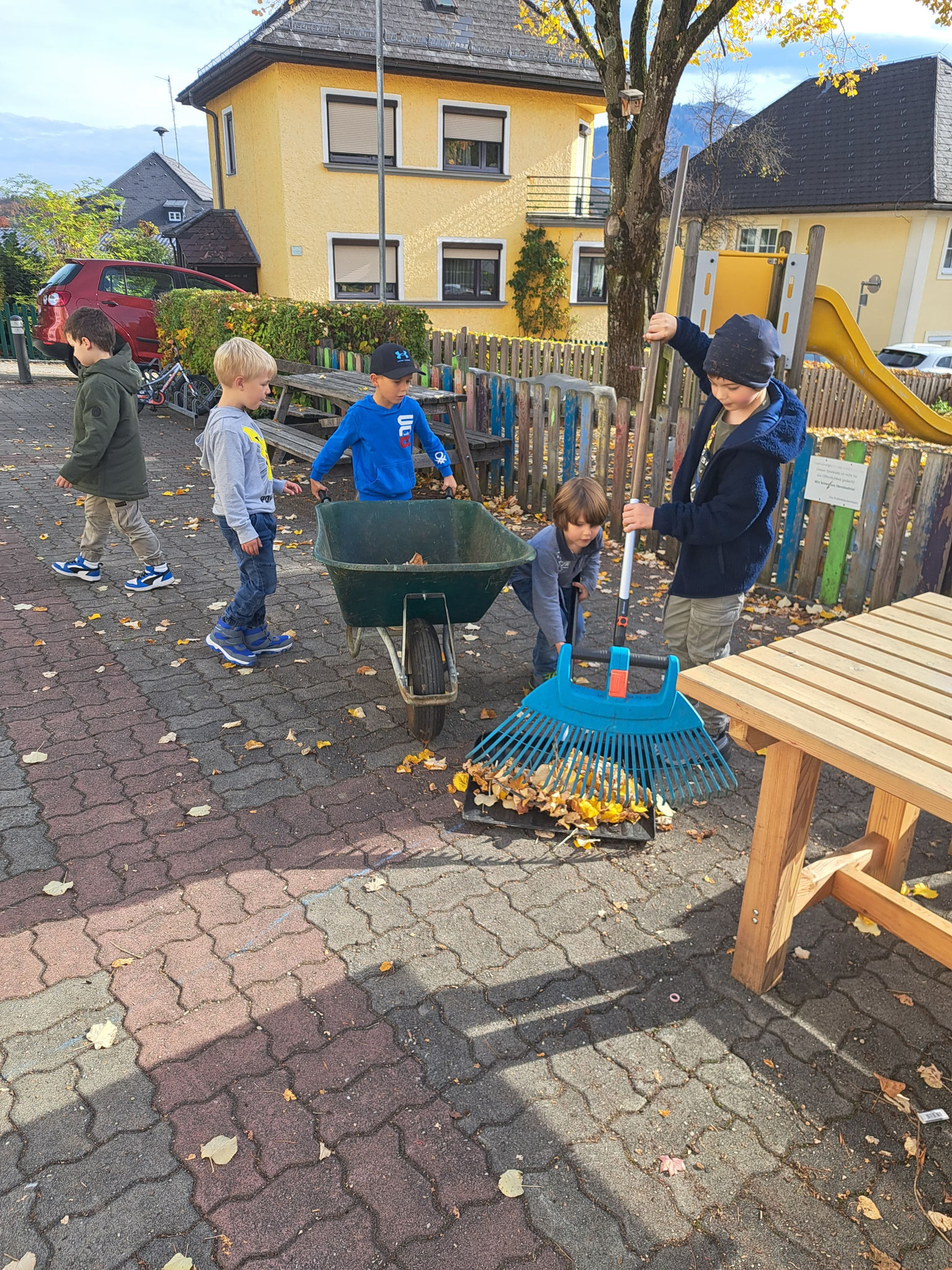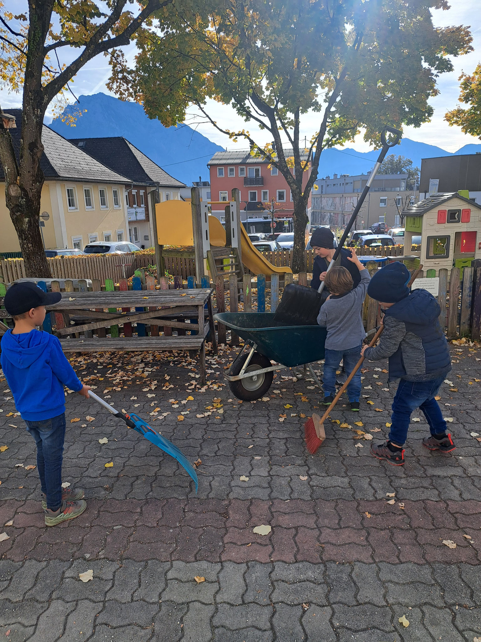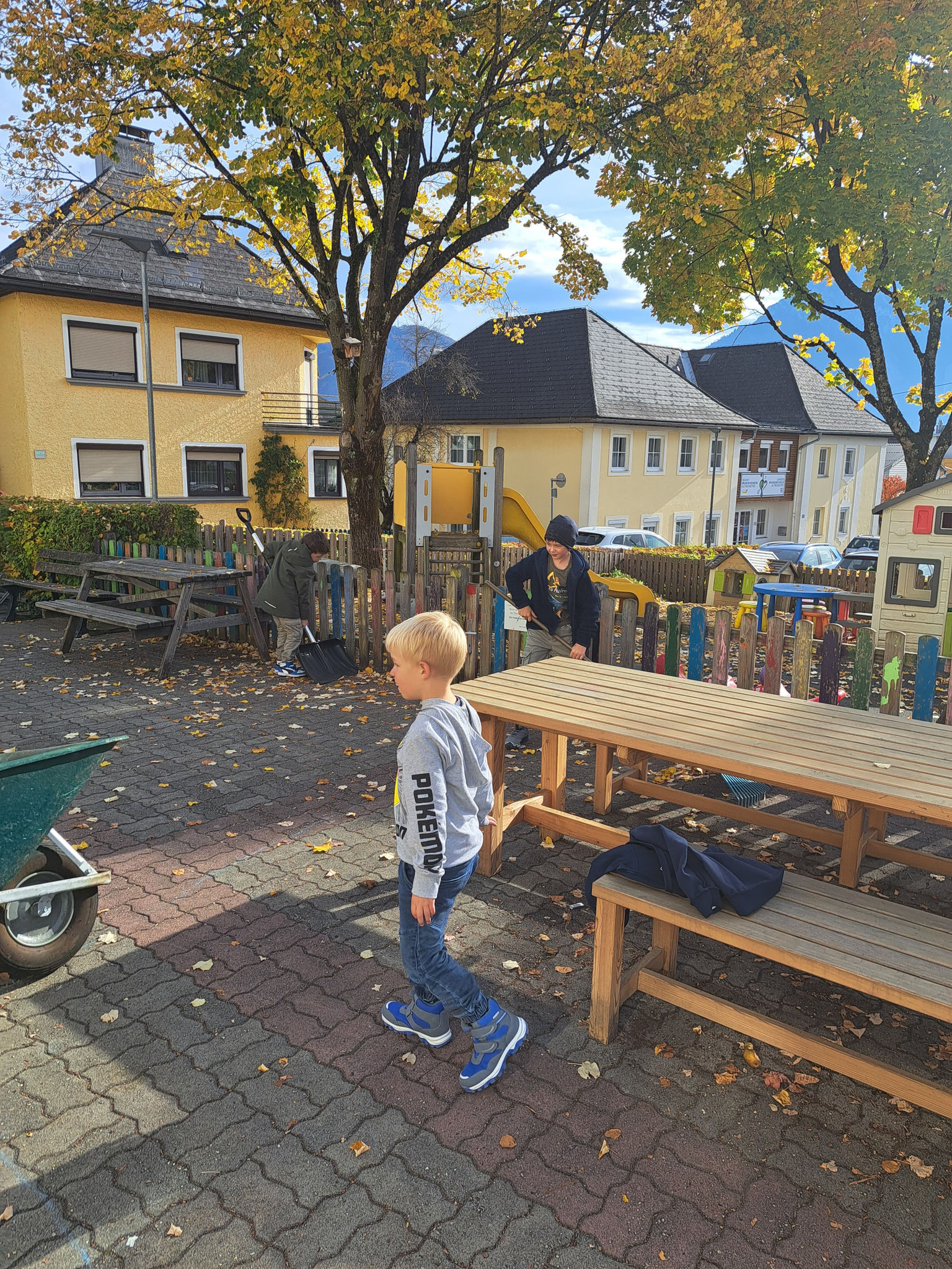 Der Herbst ist da und mit ihm auch seine bunten Blätter! Siegi kann immer auf unsere Hilfe zählen und so schnappten sich kurzerhand ein paar Kinder seine Schaufel, Rechen und die Scheibtruhe und rechten den Vorplatz.