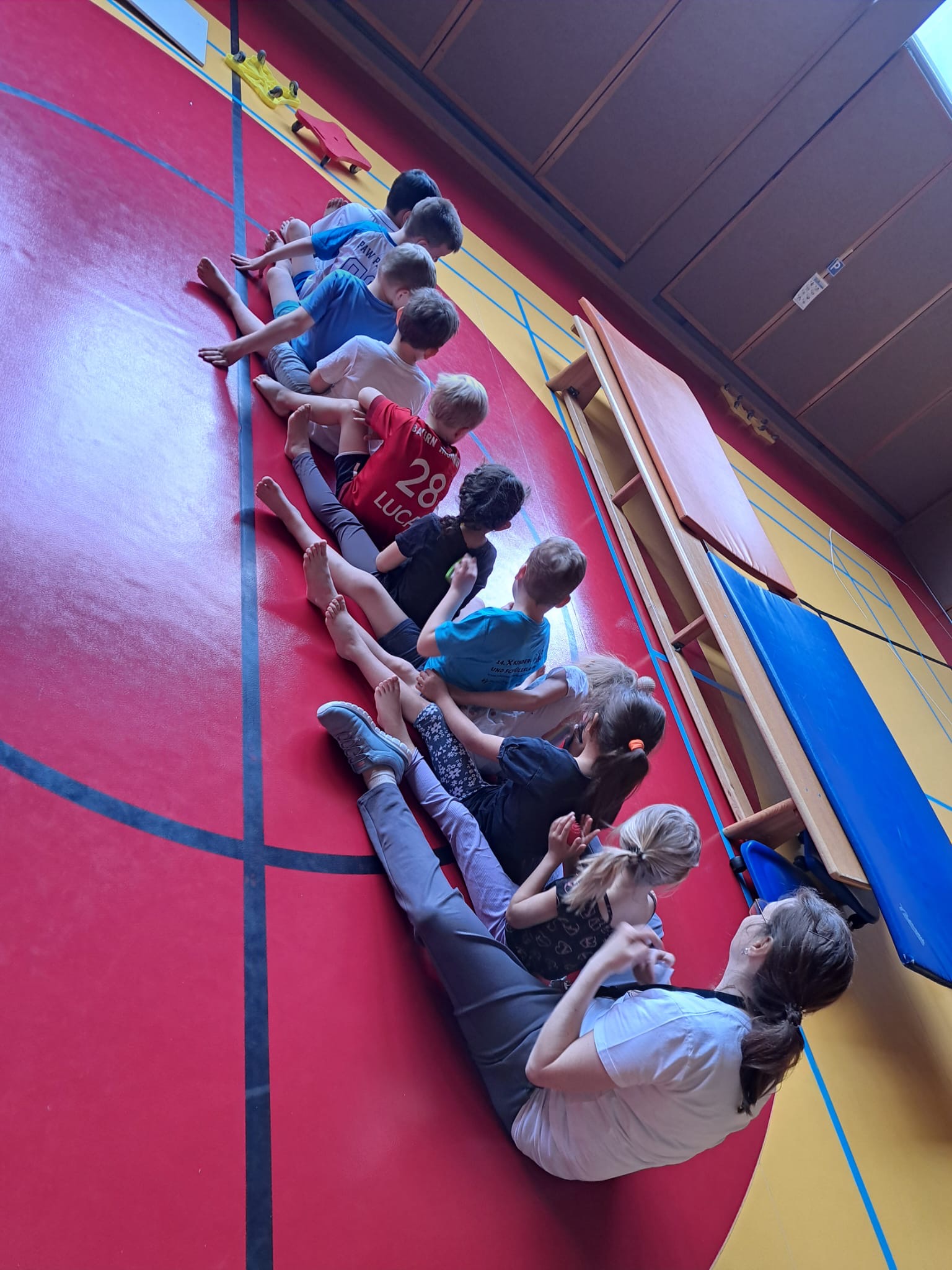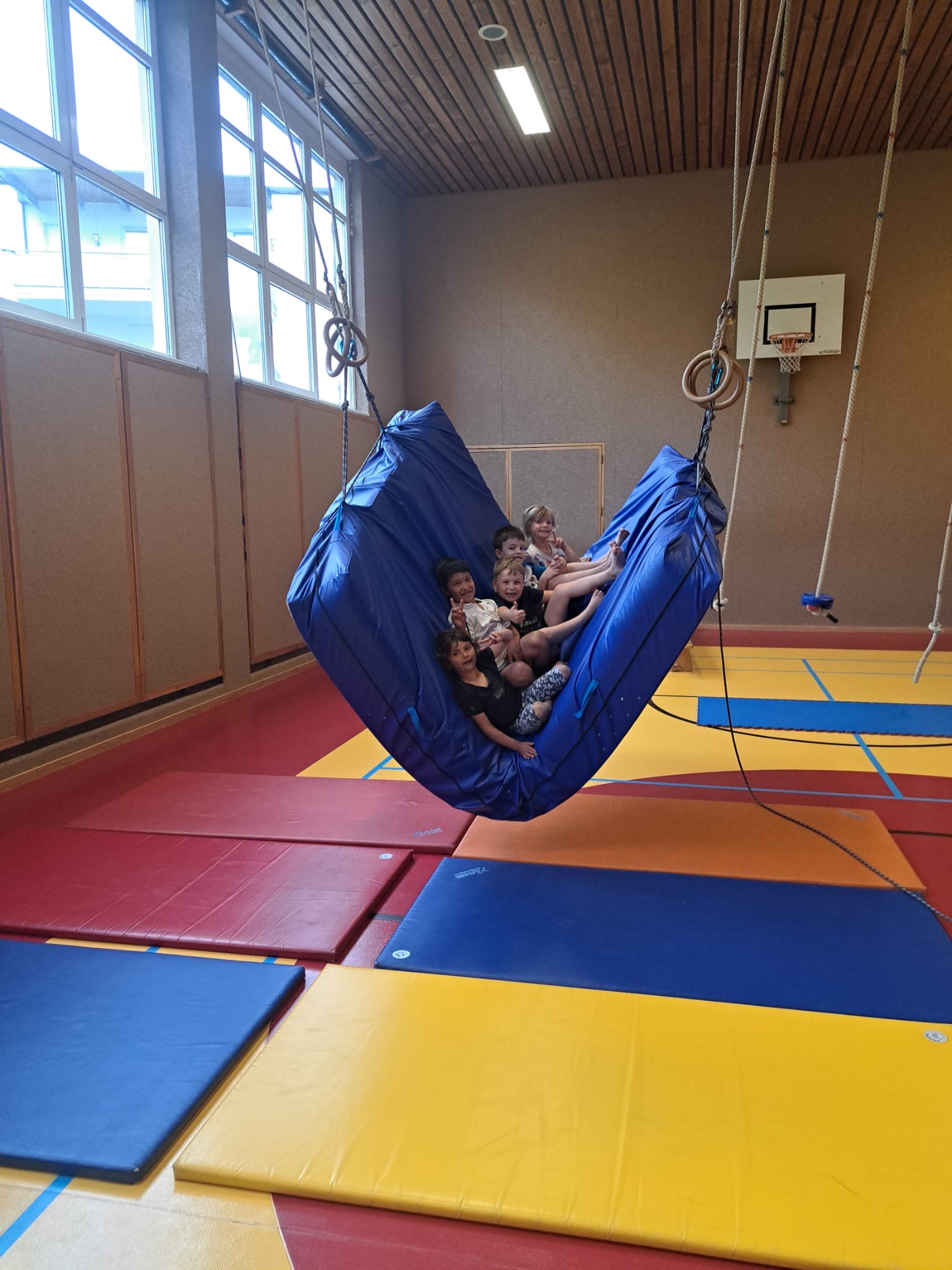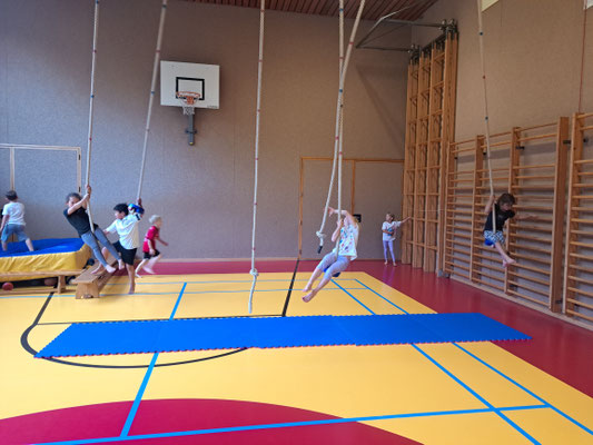 Die letzte Motopädagogik-Turnstunde mit vielen tollen Stationen zum Schwingen und Schaukeln. Ein echtes Highlight!
