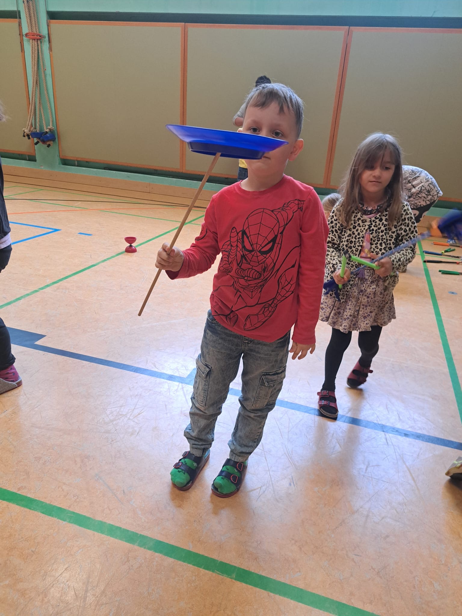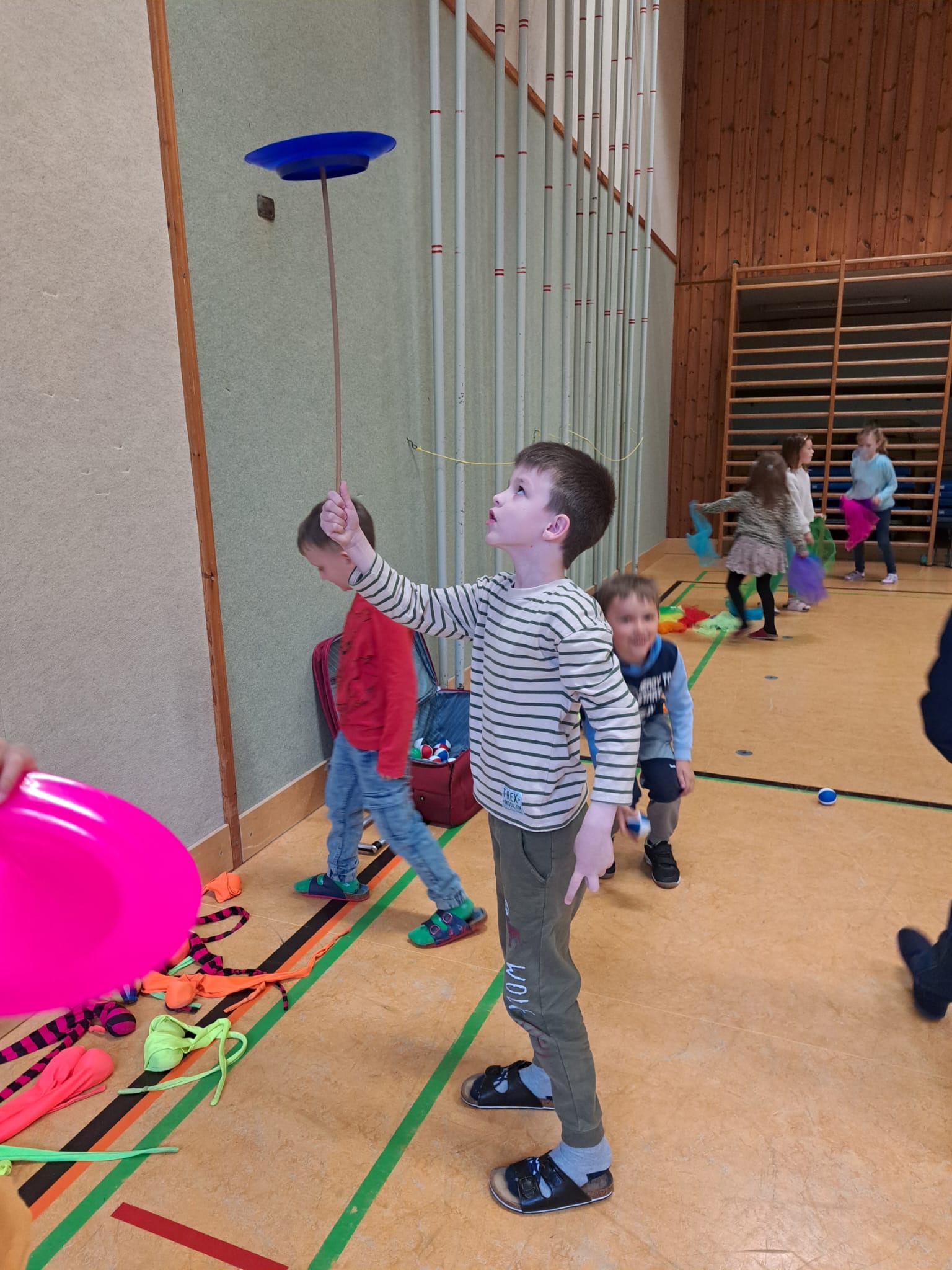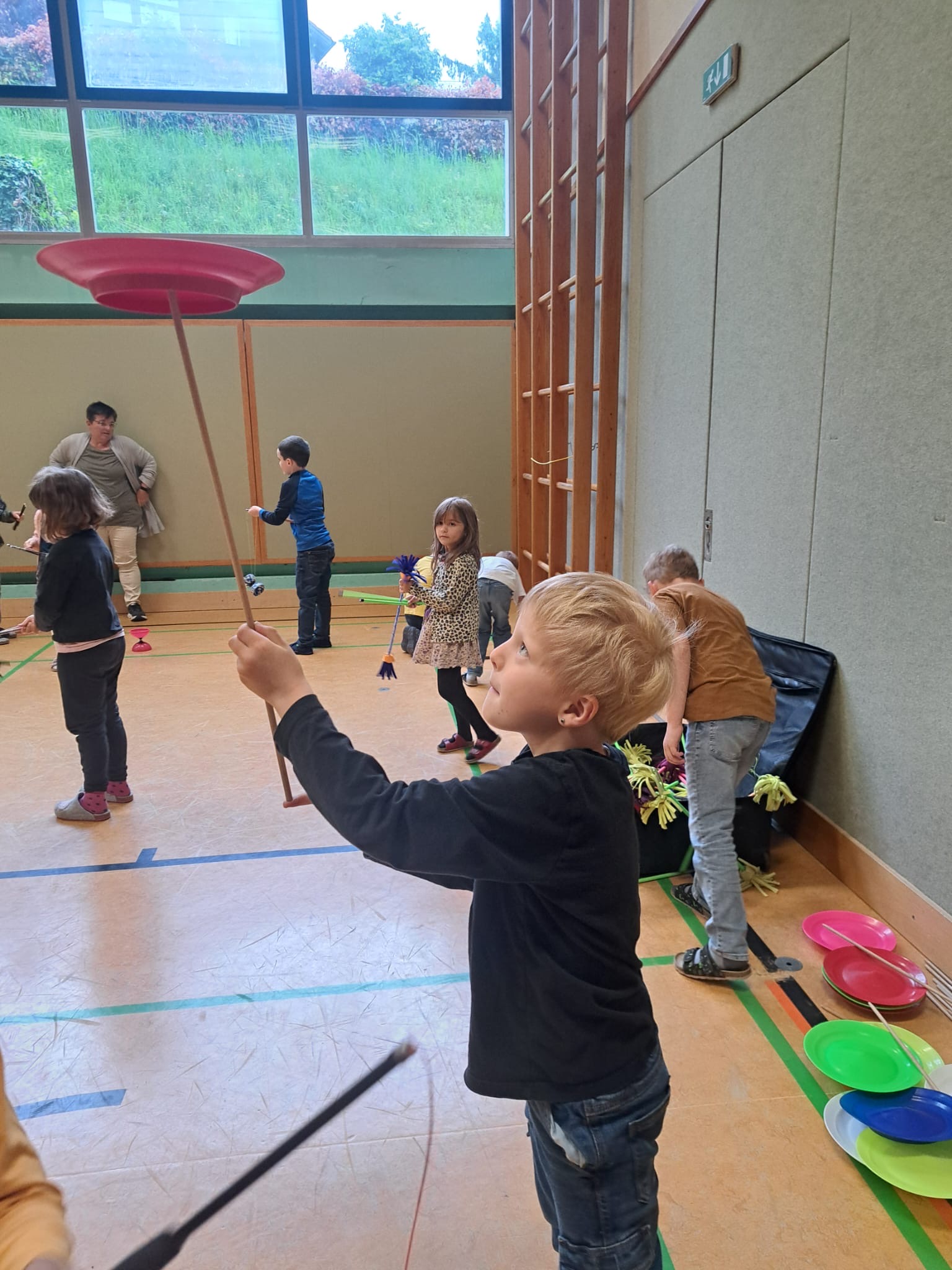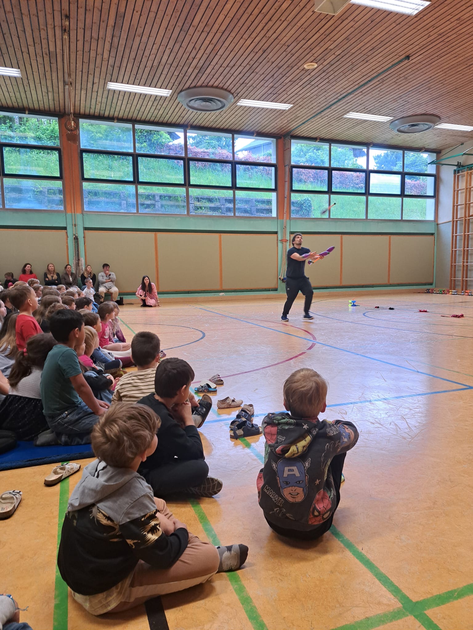 Simon, der Jongleur, hat uns besucht und eine tolle Show geliefert. Auch die Kinder durften ganz vieles Ausprobieren.