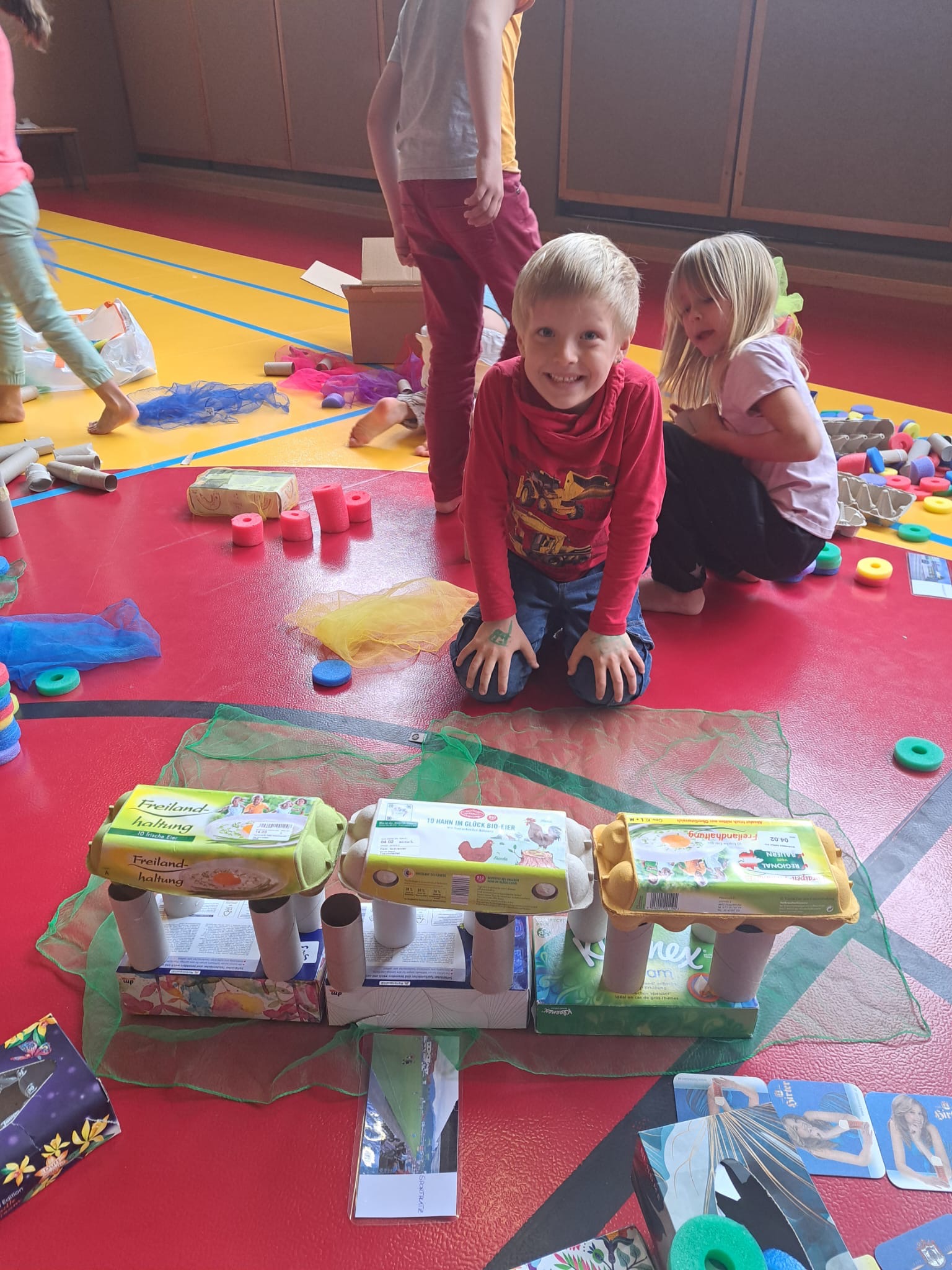 Ob Murmelbahn bauen, mit Rollbrettern rollen, schaukeln, eine eigene Stadt bauen oder Körpererfahrungen sammeln - der Spaß in den Motopädagogikeinheiten war riesengroß!